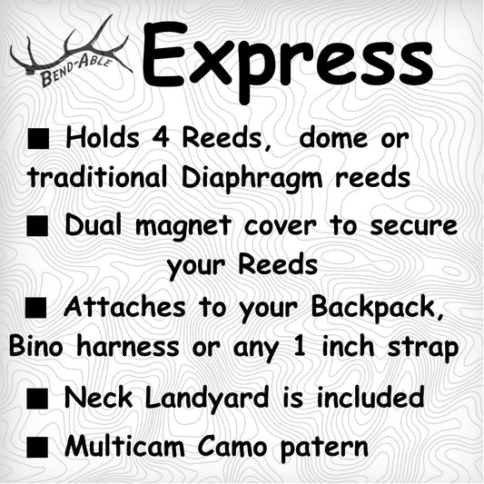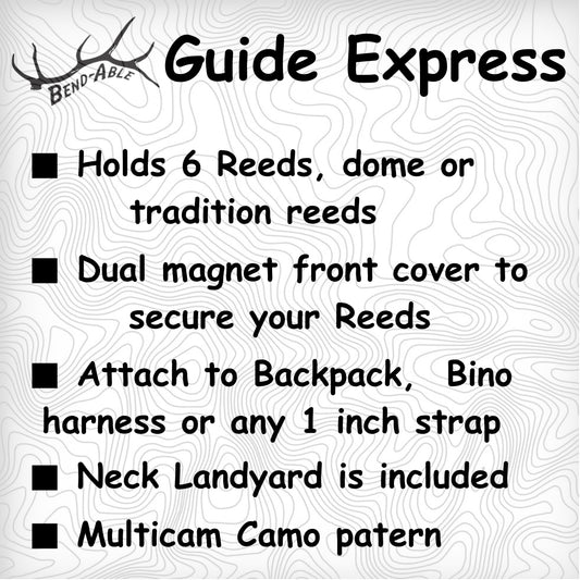 Bend-Able Guide Express – Camo Mouth Call Organizer for Elk & Turkey Hunting | Holds 6 Diaphragm Reeds | Magnetic Flap | Attaches to Pack, Harness, or Worn with Lanyard