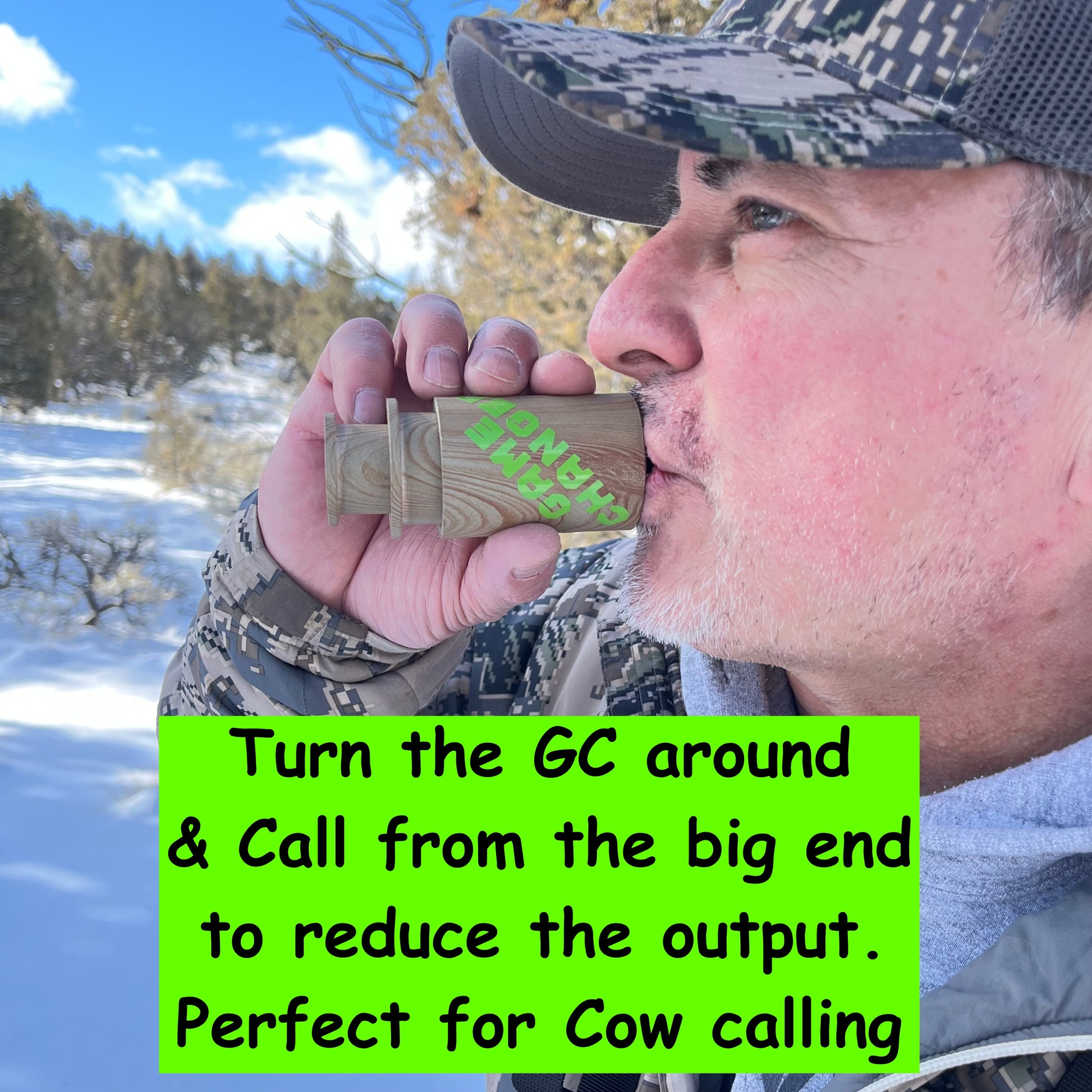 The Game Changer's double reed system is designed to be used with any internal mouth reed or diaphragm. Call in elk, turkey, coyote, or any other big game! The Game Changer is only 4" tall and 1.5" wide. Lanyard included.