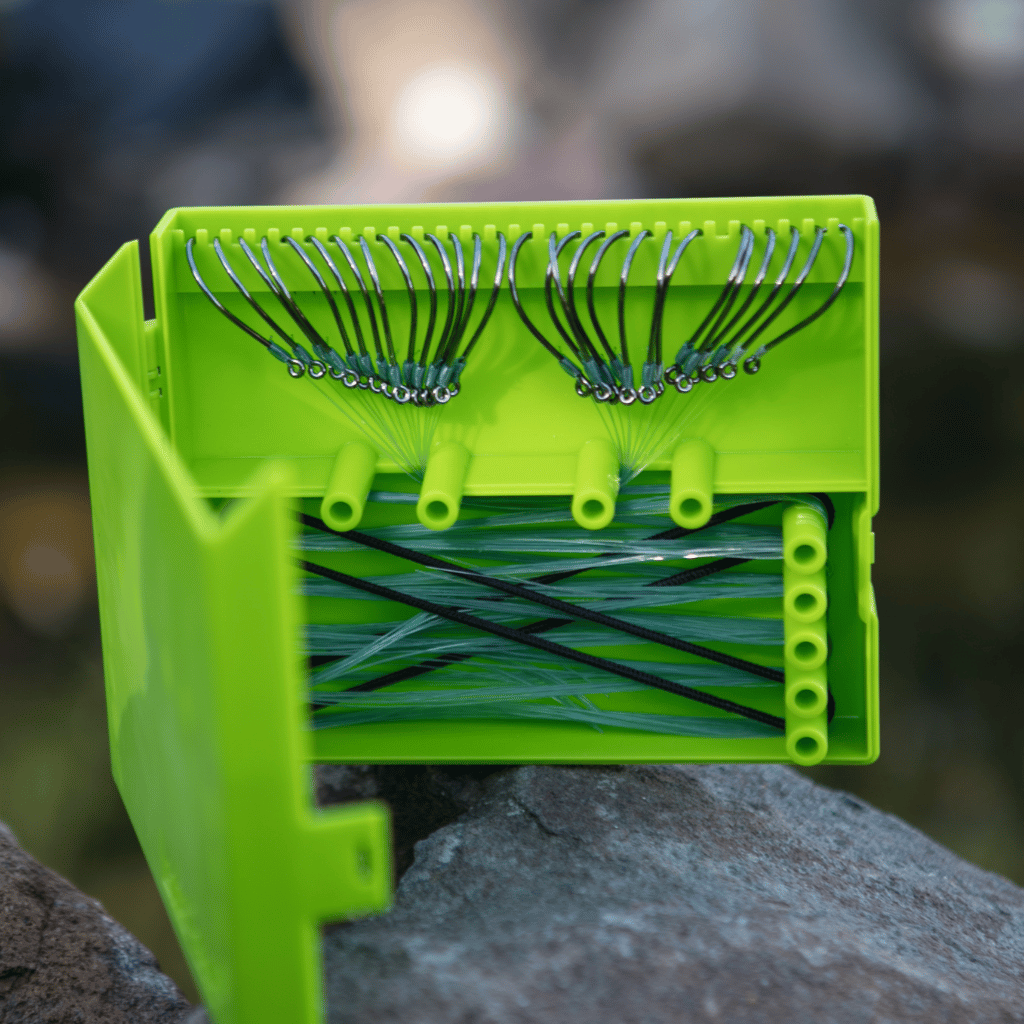 - Has the capacity to hold up to 28 pre-tied leaders without swivels or loop knots on the tail end